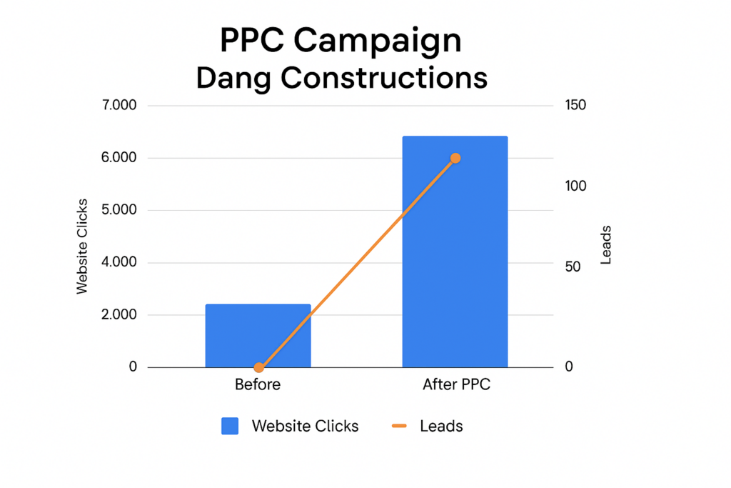 Dang Constructions struggled with leads because their ads weren’t effective. We built a new PPC campaign with better keywords and landing pages. Also, their quality score improved—but only after targeting the right audience.