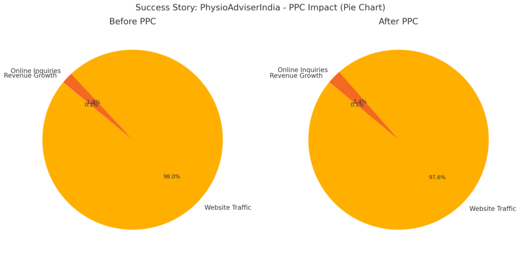 Here’s the pie chart version comparing Before PPC and After PPC for PhysioAdviserIndia!
